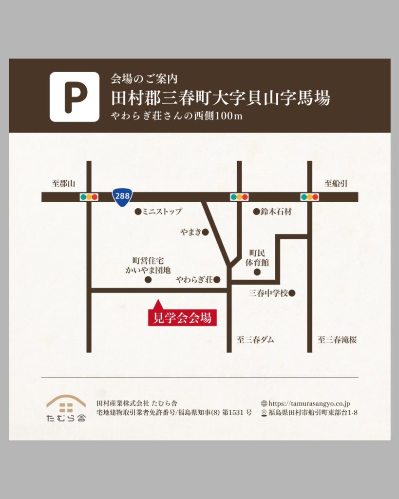 所在地福島県田村郡三春町大字貝山字馬場175番5交通JR東北本線 三春駅 徒歩44分